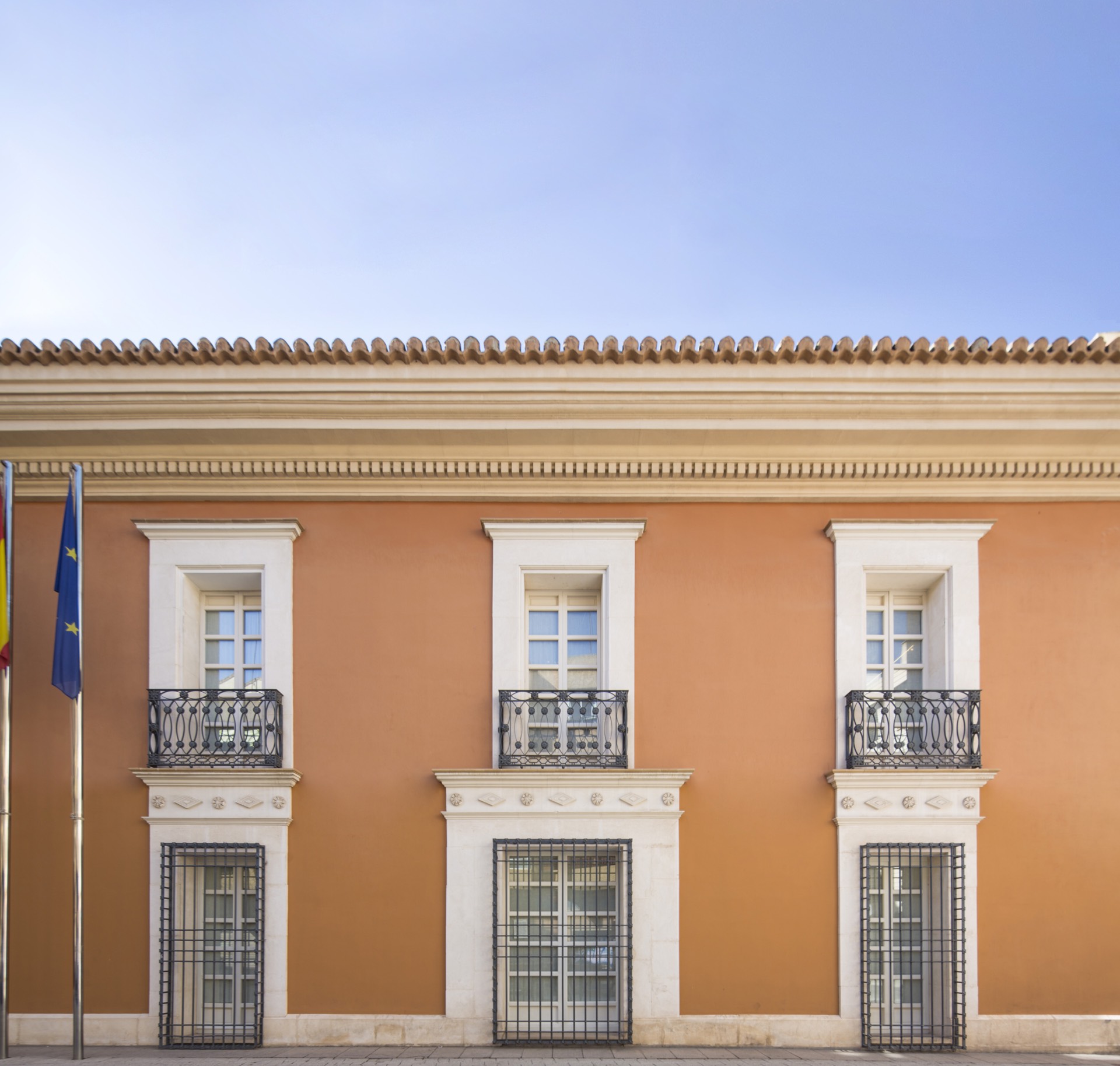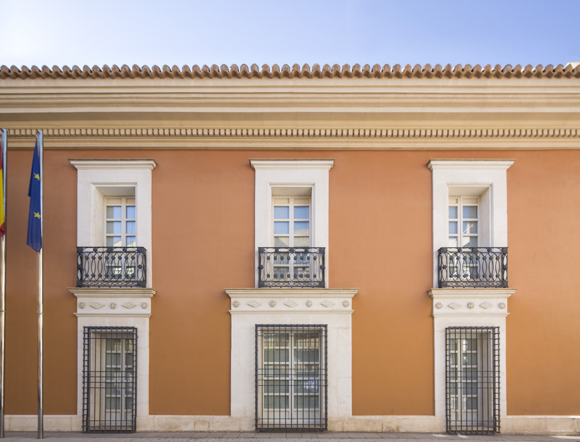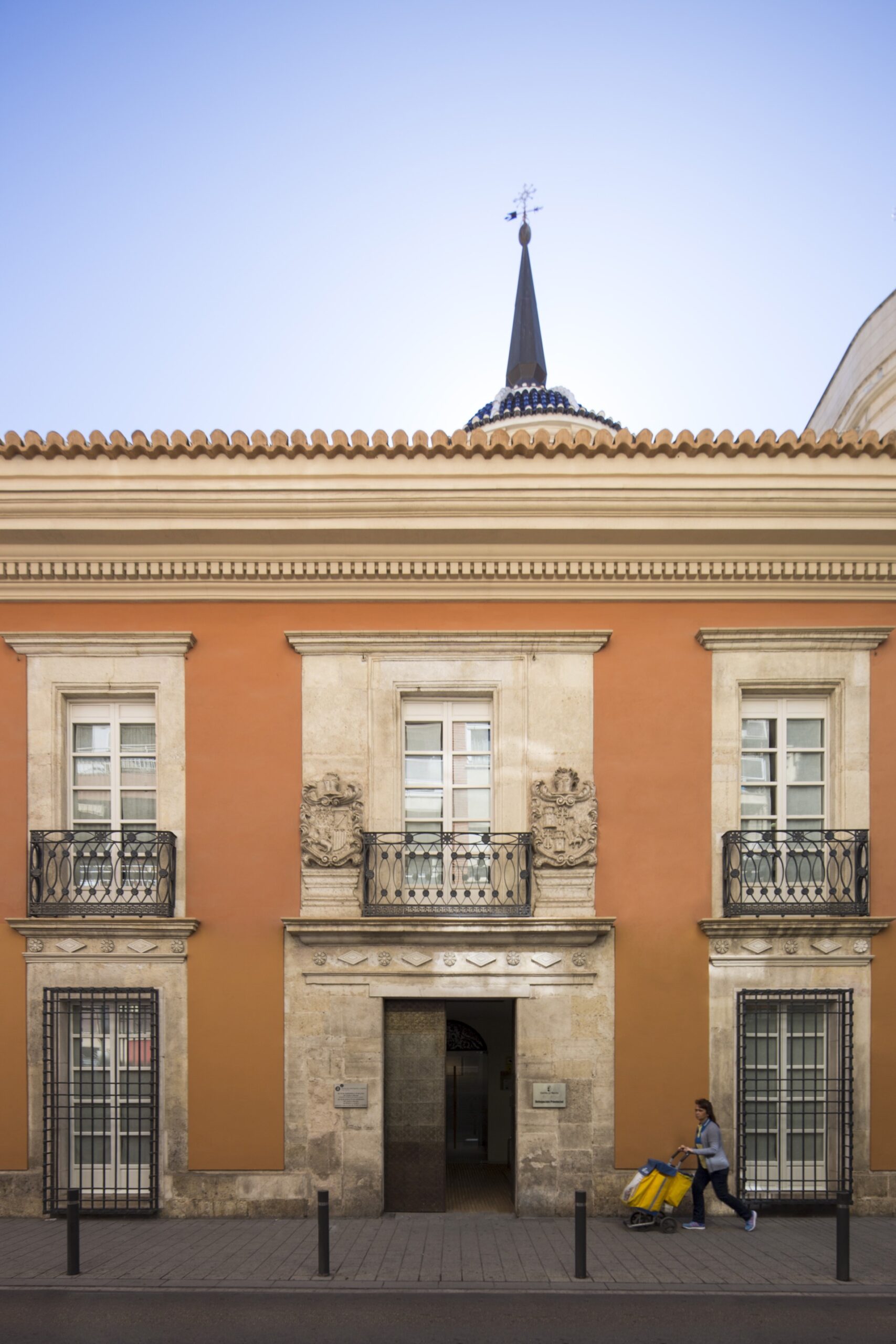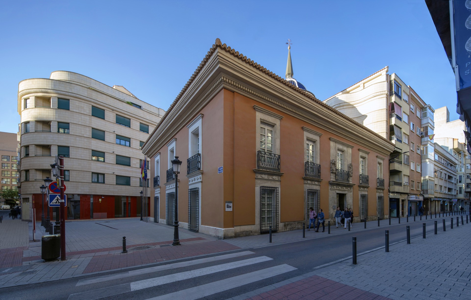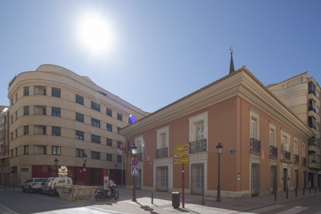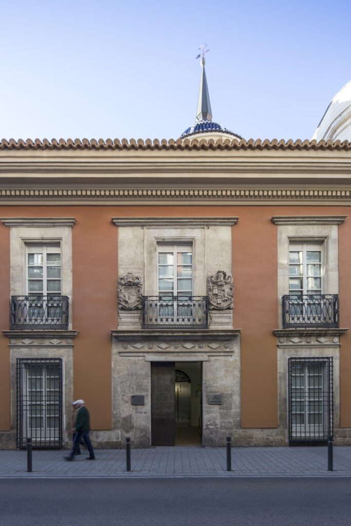 Presenta planta de forma rectangular con cubierta a cuatro aguas coronada por una singular cúpula levantina de teja vidriada de colores azul y blanco, bajo la que se encuentra la escalera monumental que comunica las dos plantas de la edificación. La puerta de acceso situada en la fachada principal cuenta con escudos heráldicos tallados en piedra. Originalmente tenía configuración entre medianeras con un patio trasero, pero una de las decisiones más importantes del proyecto de rehabilitación fue el de ceder al Ayuntamiento la esquina y parte del patio trasero de tal manera que pasara a ser plaza pública, generando una nueva fachada lateral, que se hizo repitiendo la composición y elementos de la fachada principal y la fachada a patio.